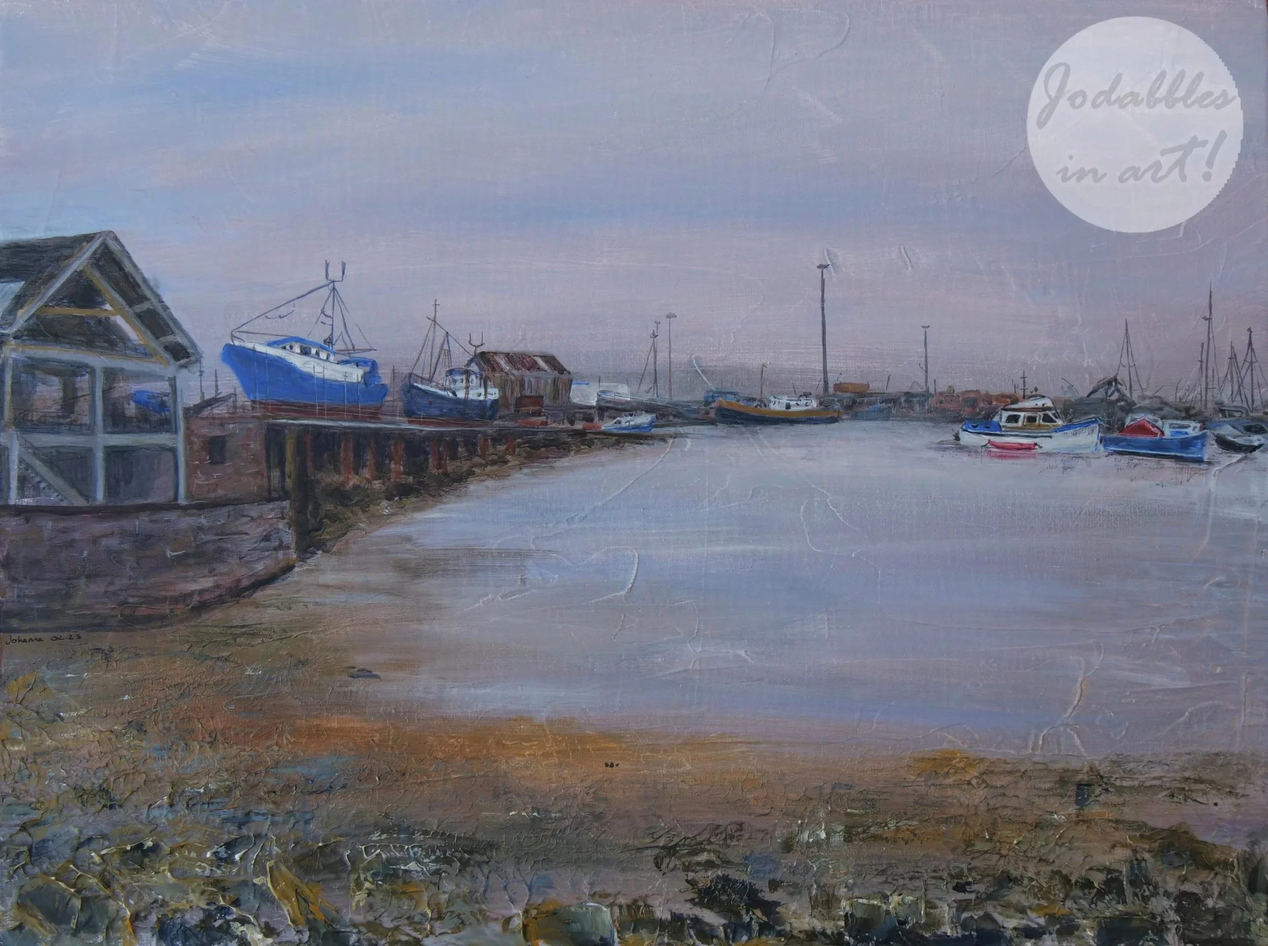 February 2025, Scottish harbor in acrylics - my most detailed and ambitious painting in acrylics.